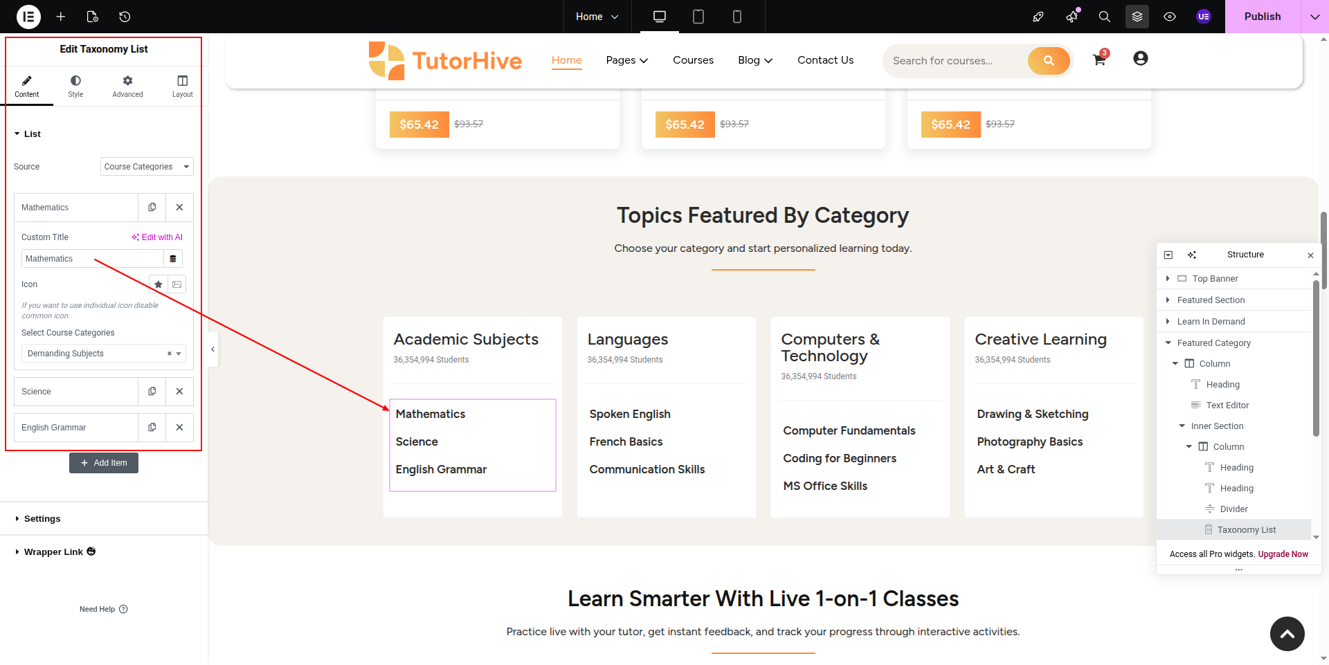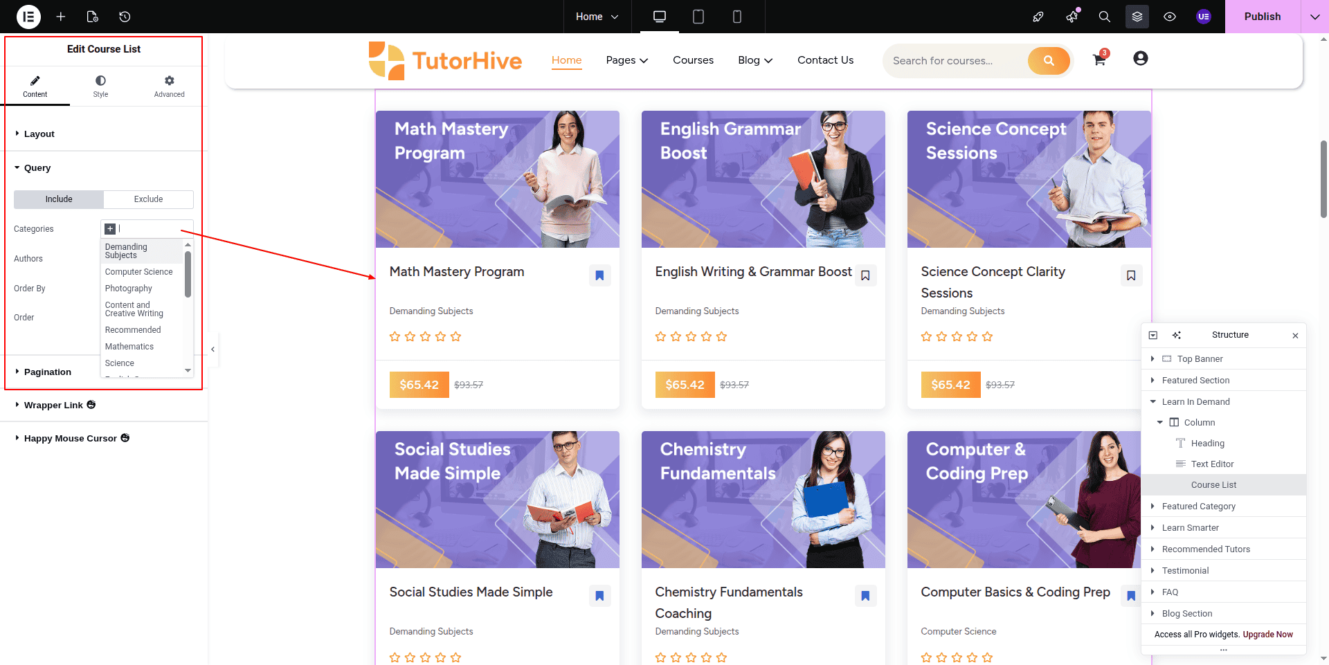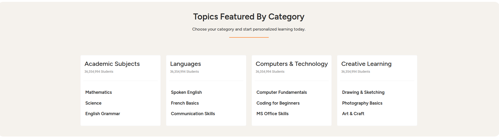 Here courses comes from respective category can edit from Dashboard