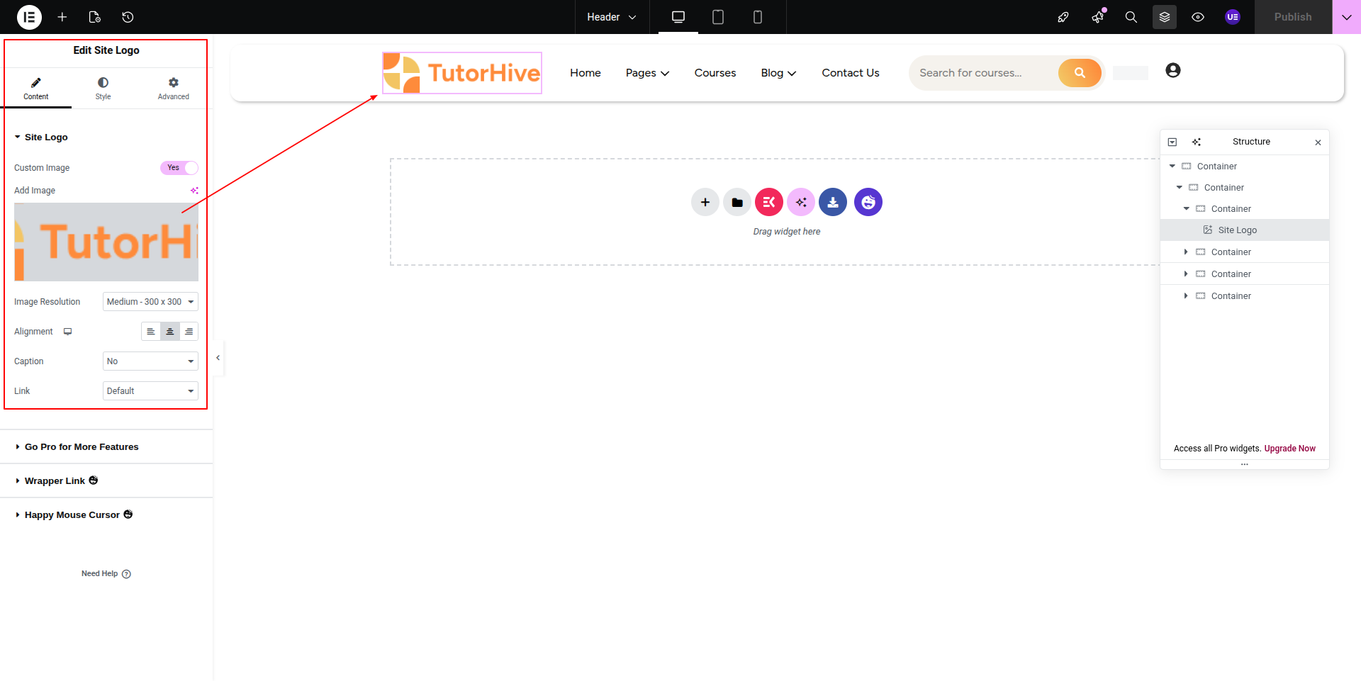 2) You have to go inside the header and edit content.