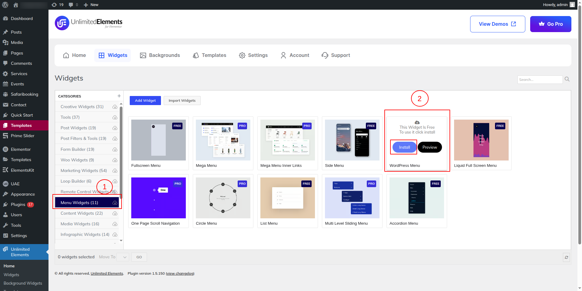 After that, install the Menu Widgets by clicking on WordPress Menu.