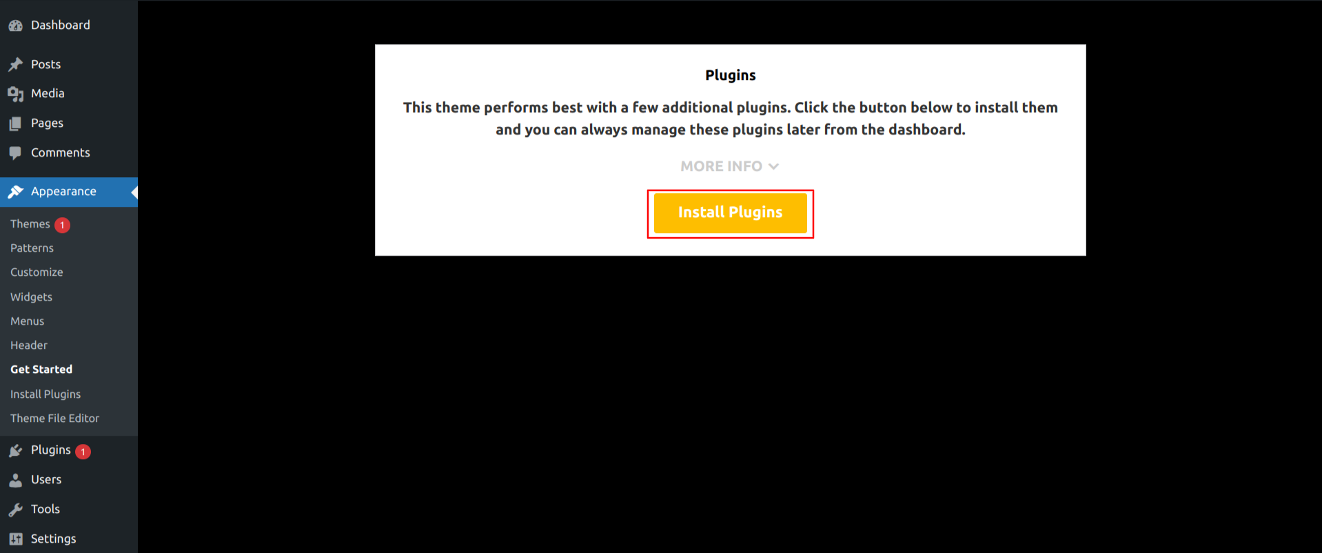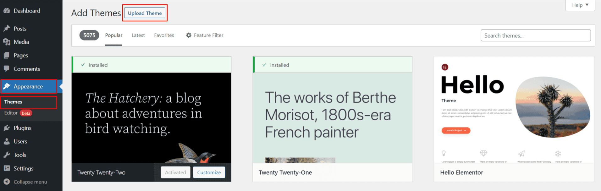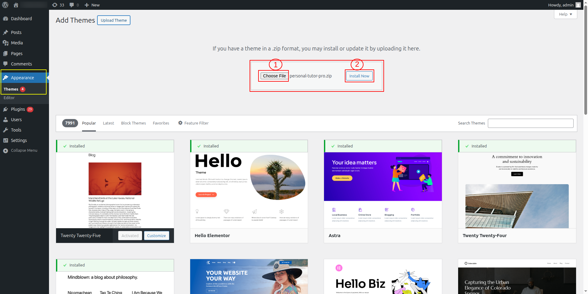 1-Use WordPress admin to install a theme.