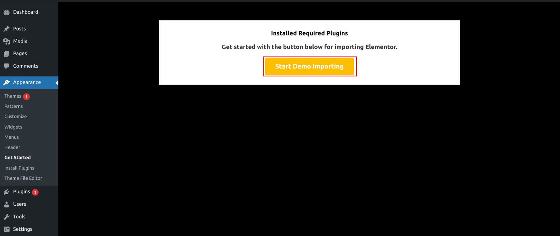 3) Select "Start Demo" Import Buttons