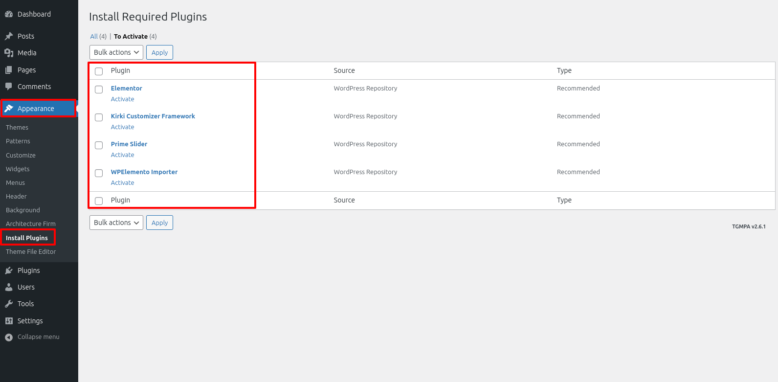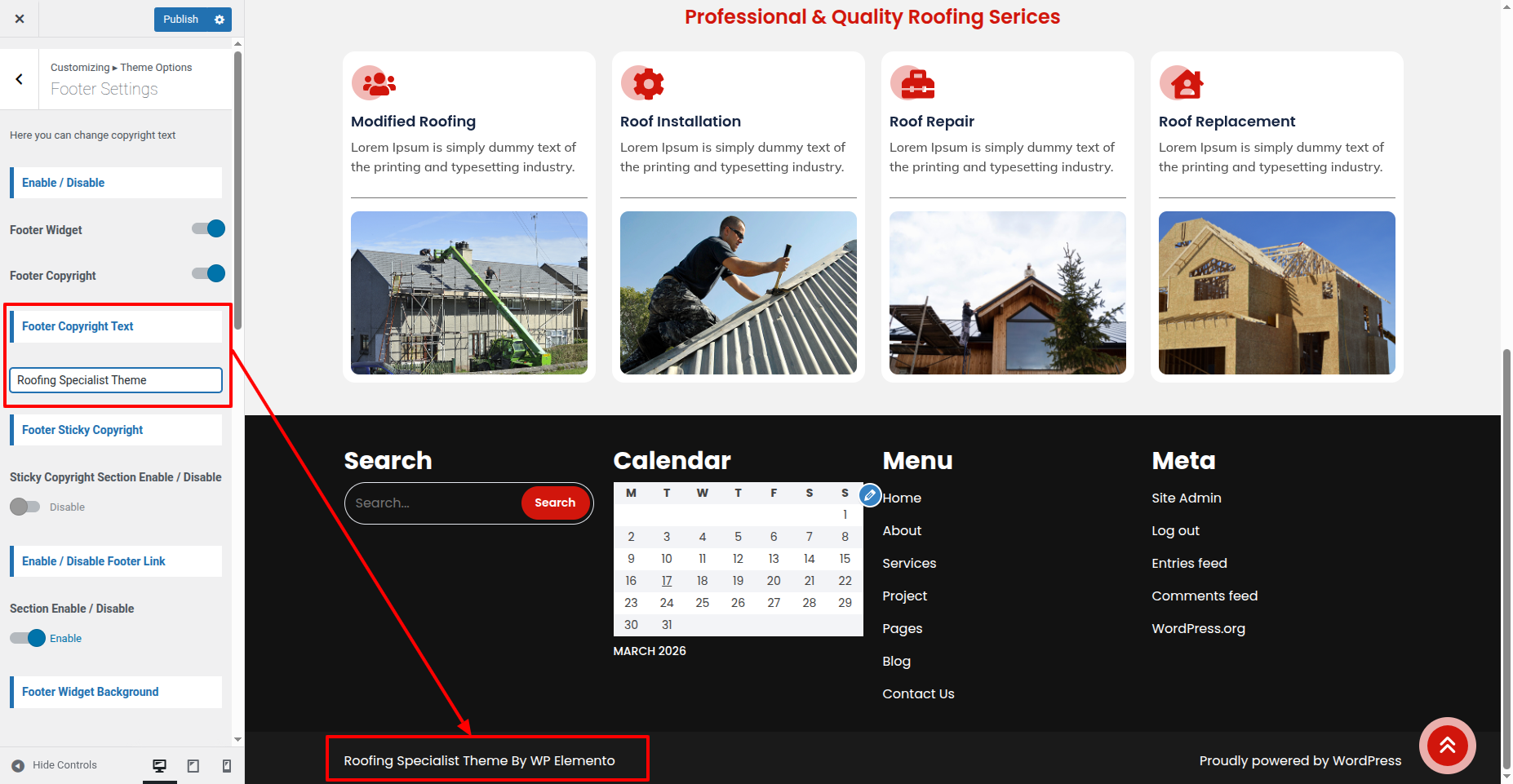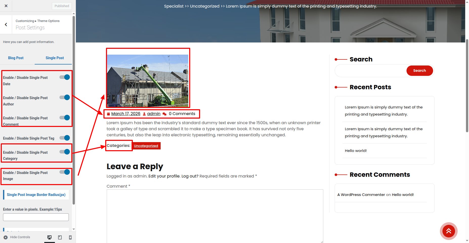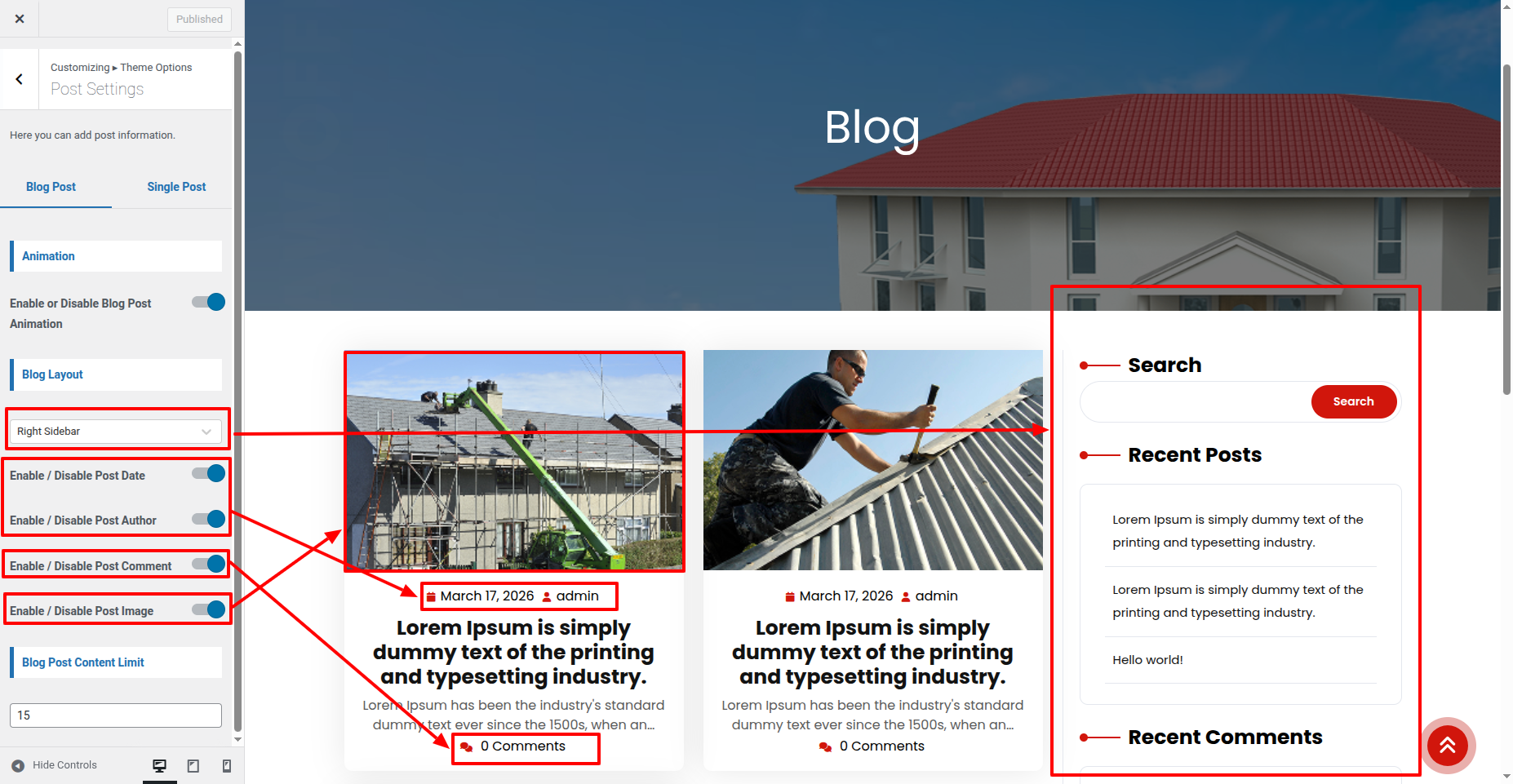 Proceed to Dashboard Customizer Theme Options Post Settings