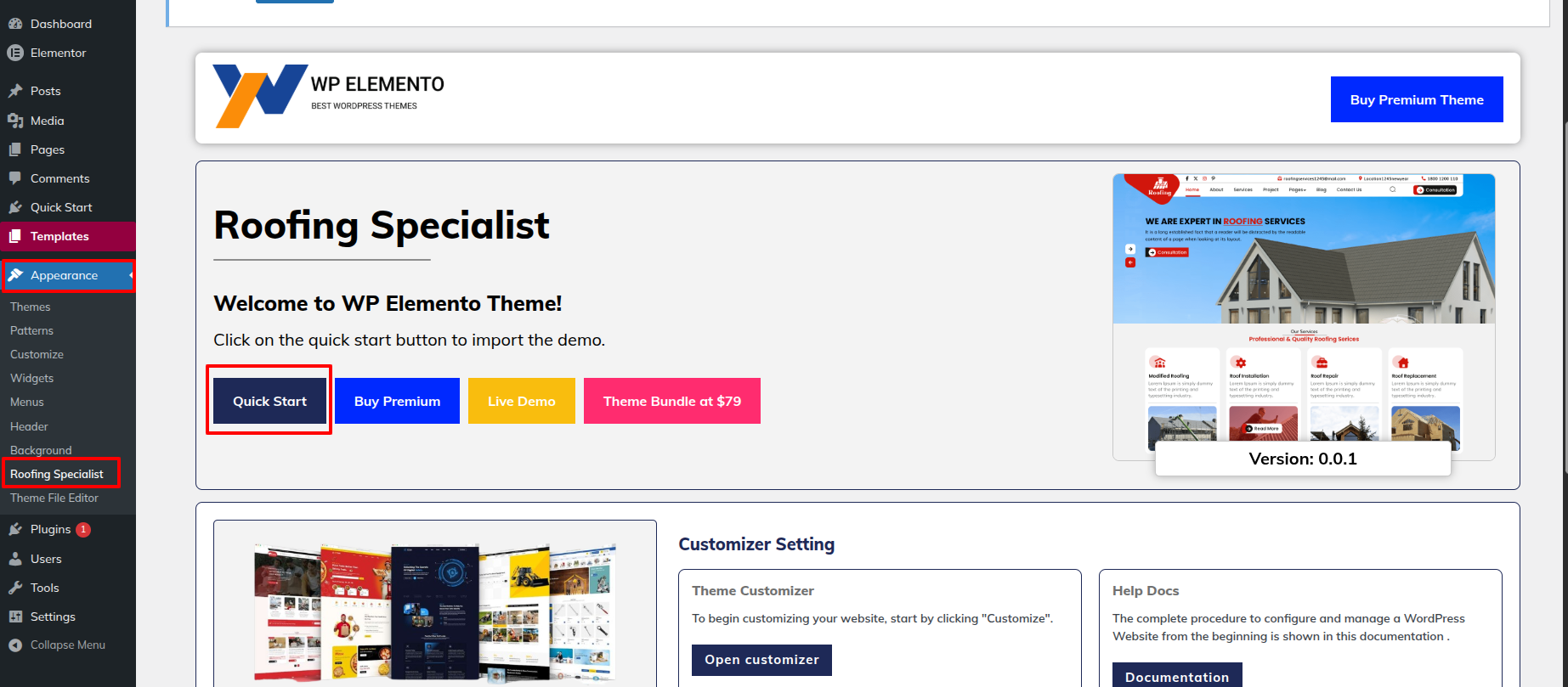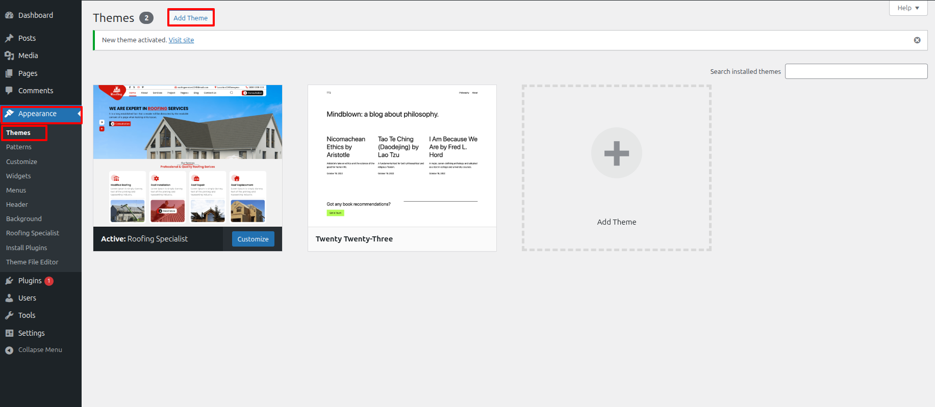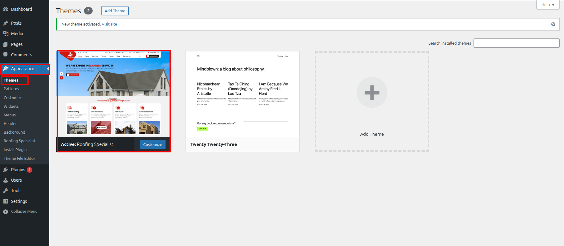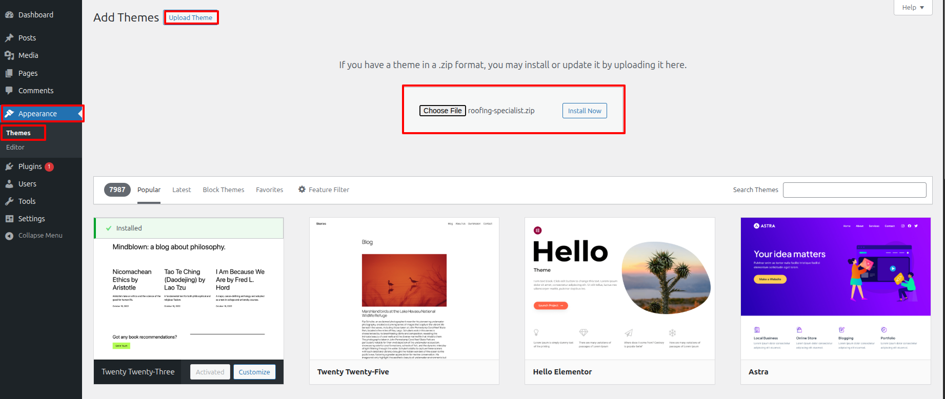 3. After clicking Browse, select your roofing-specialist.zip file and click Install now.