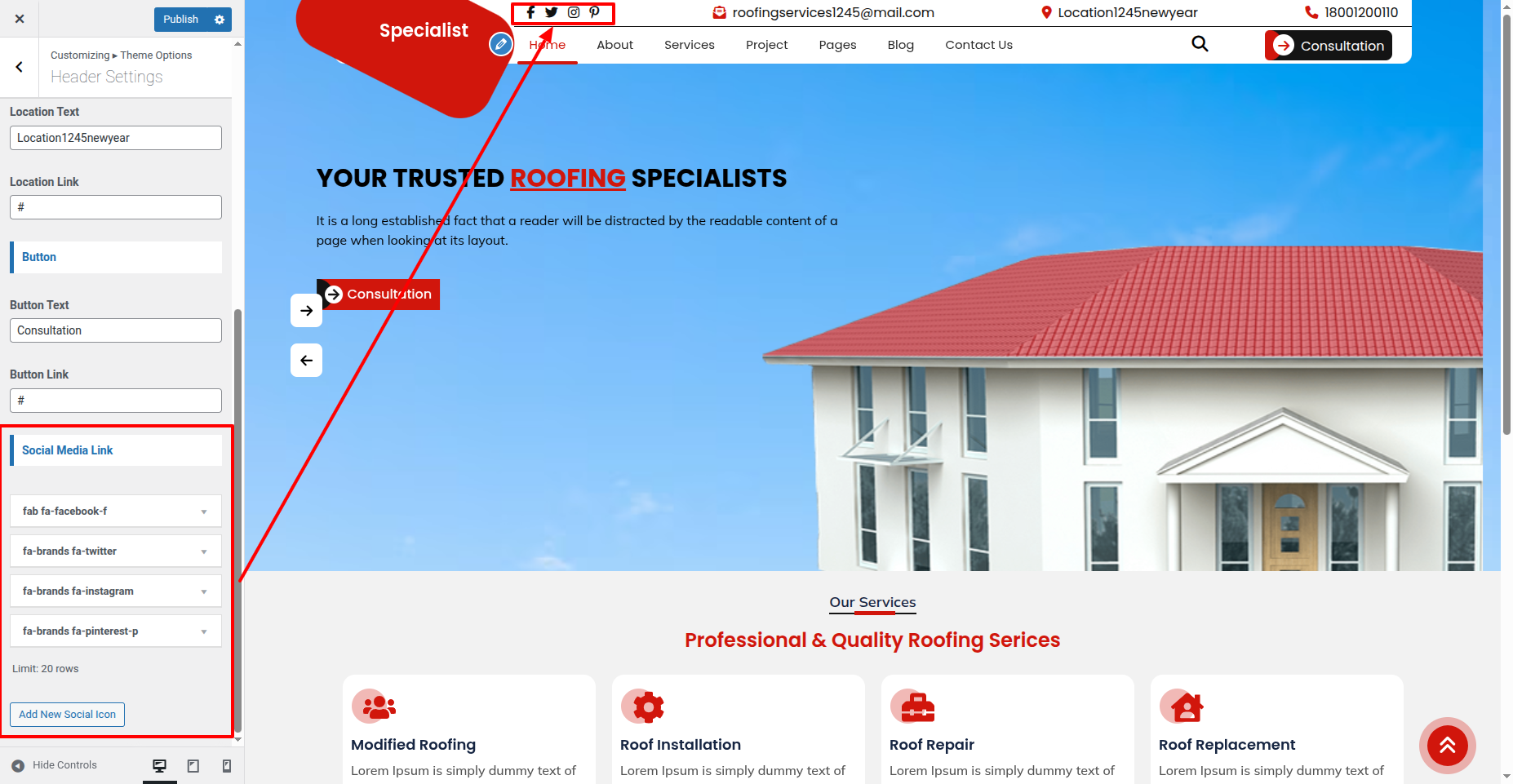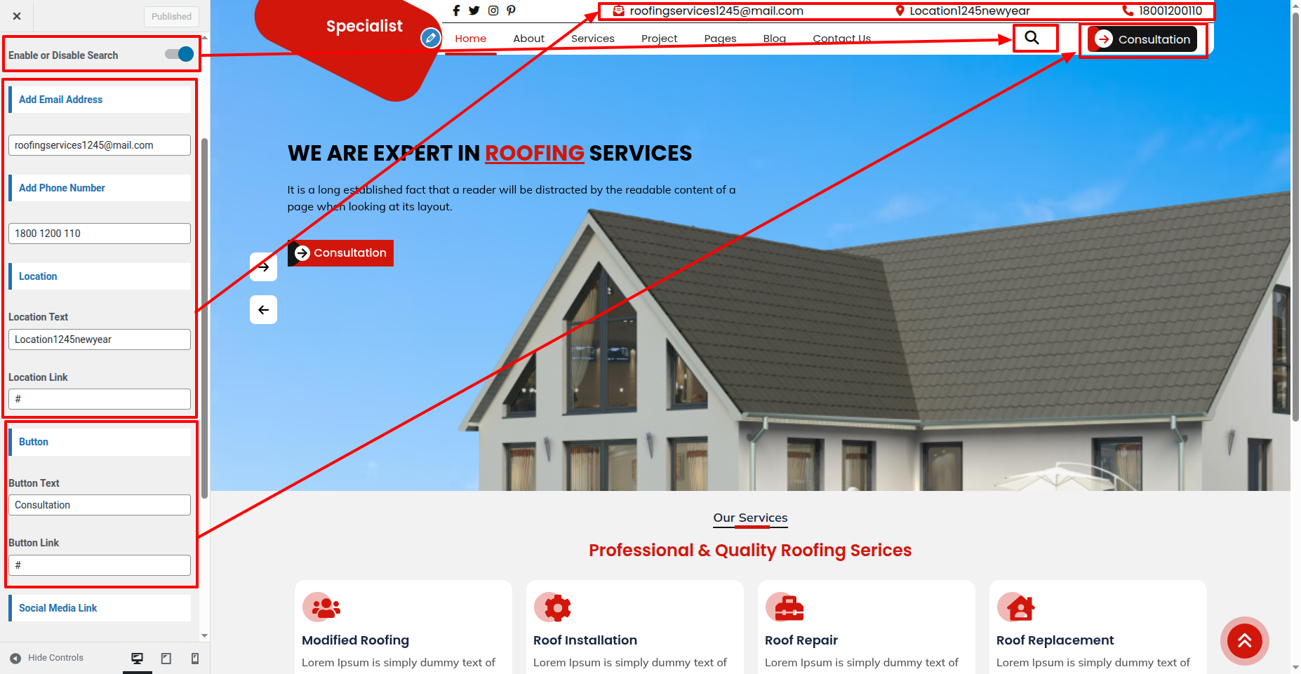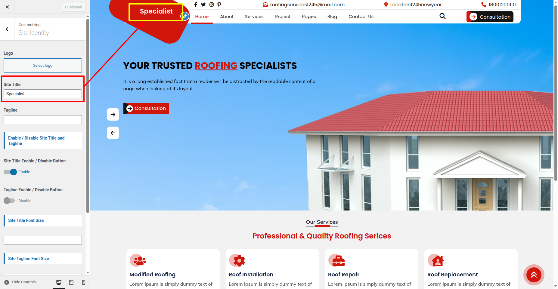 here you add site title and tagline and also add enable/disable site title and tagline button.