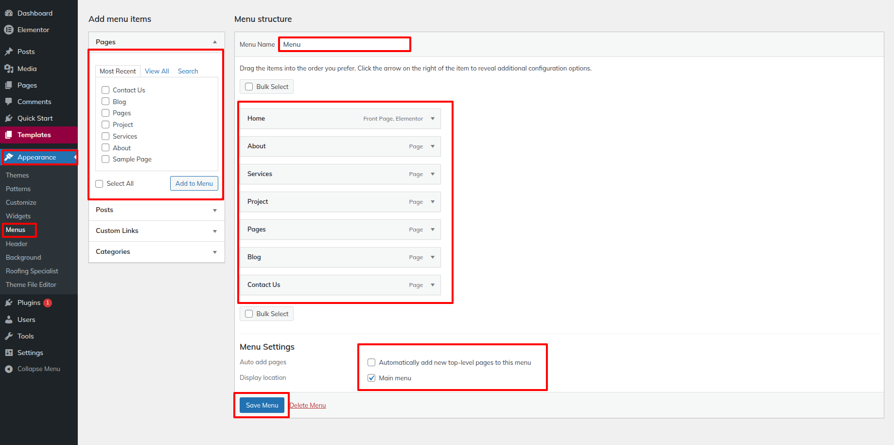 1.Pages should be added by selecting the appropriate checkboxes. After adding them, you can rearrange the menu list by dragging and dropping items into place.
