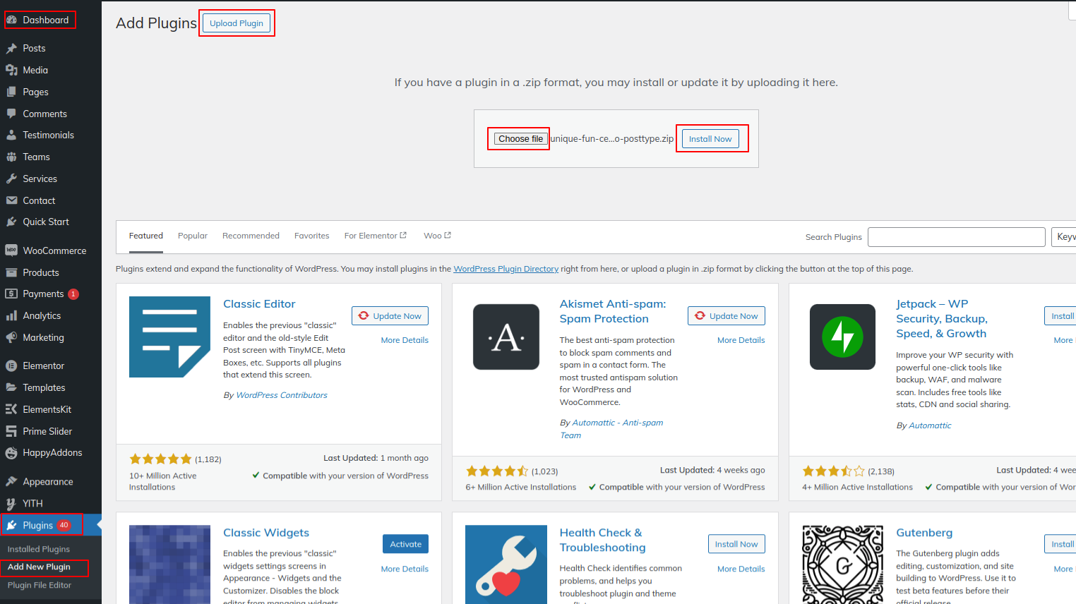 Click here to upload a plugin Dashboard >>Plugins>> Add New >>Plugins Upload