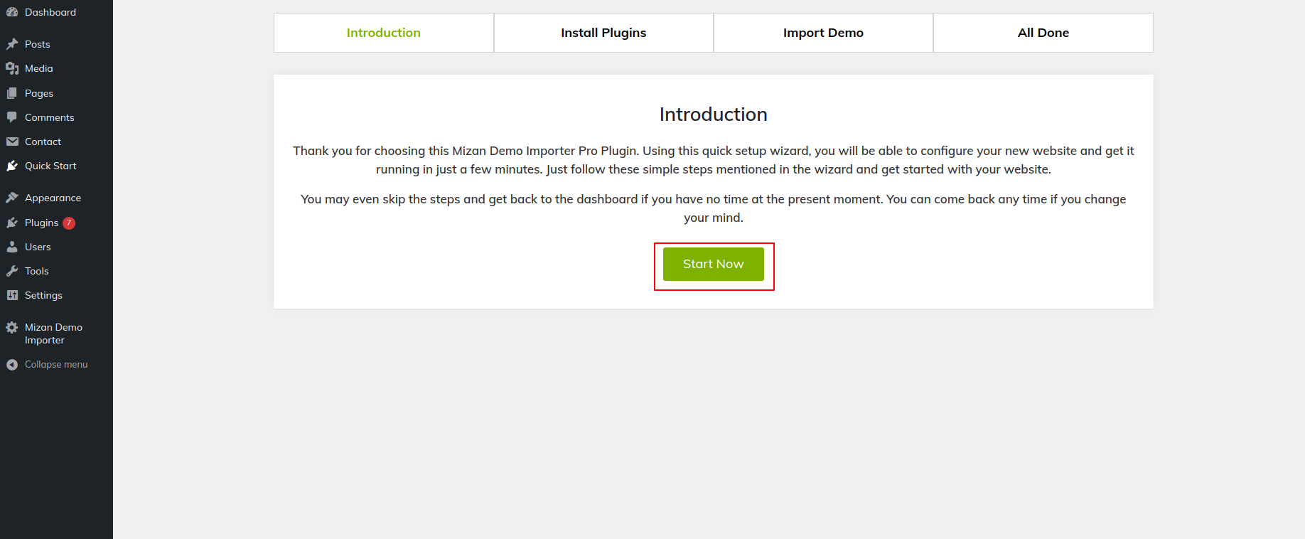 6) To begin, press the Start Now button.