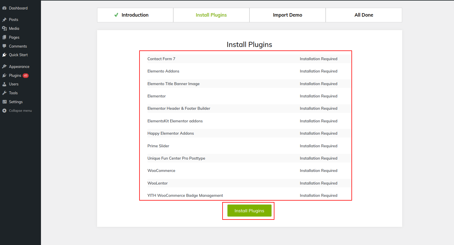 7) Install plugins by clicking the button..