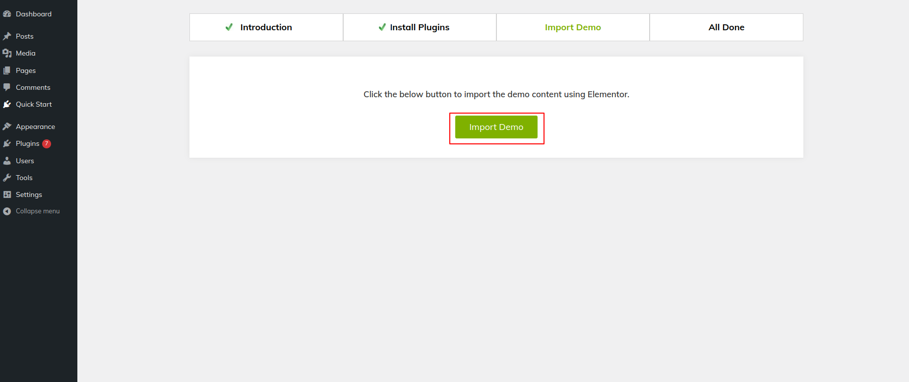 3) then press the button to begin importing the demonstration..