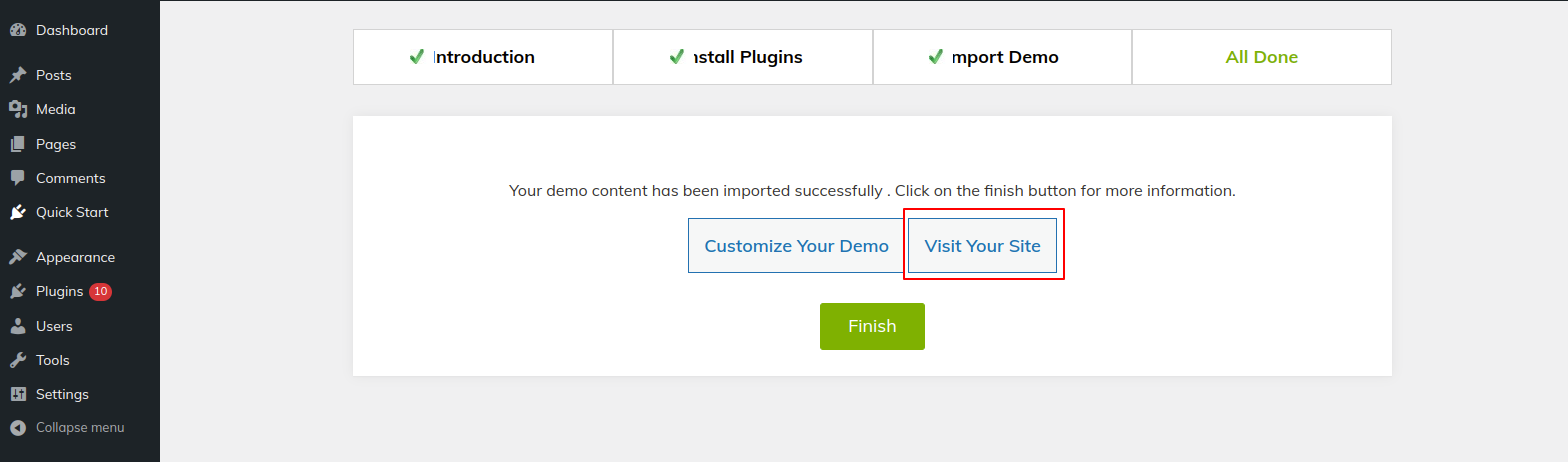Congratulations!! The theme has successfully been set up.