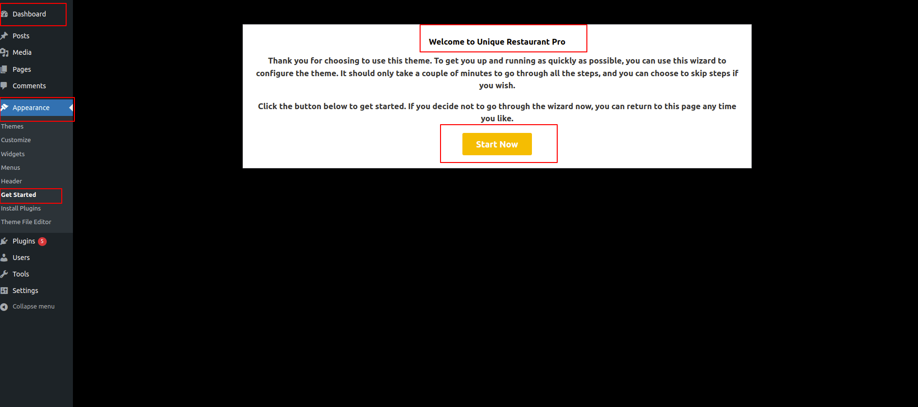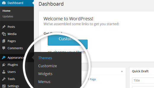 1) get started by clicking Dashboard >> Appearance >>