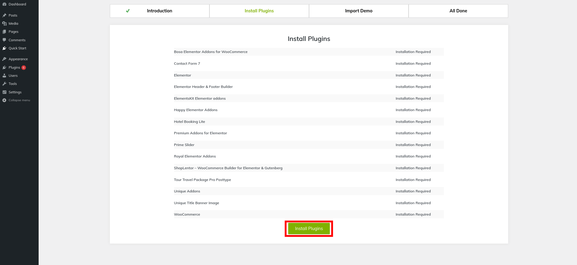 7) Install plugins by clicking the button..