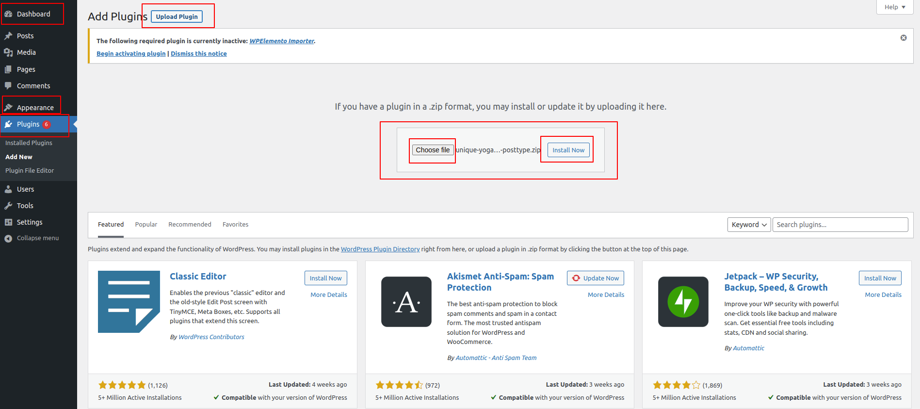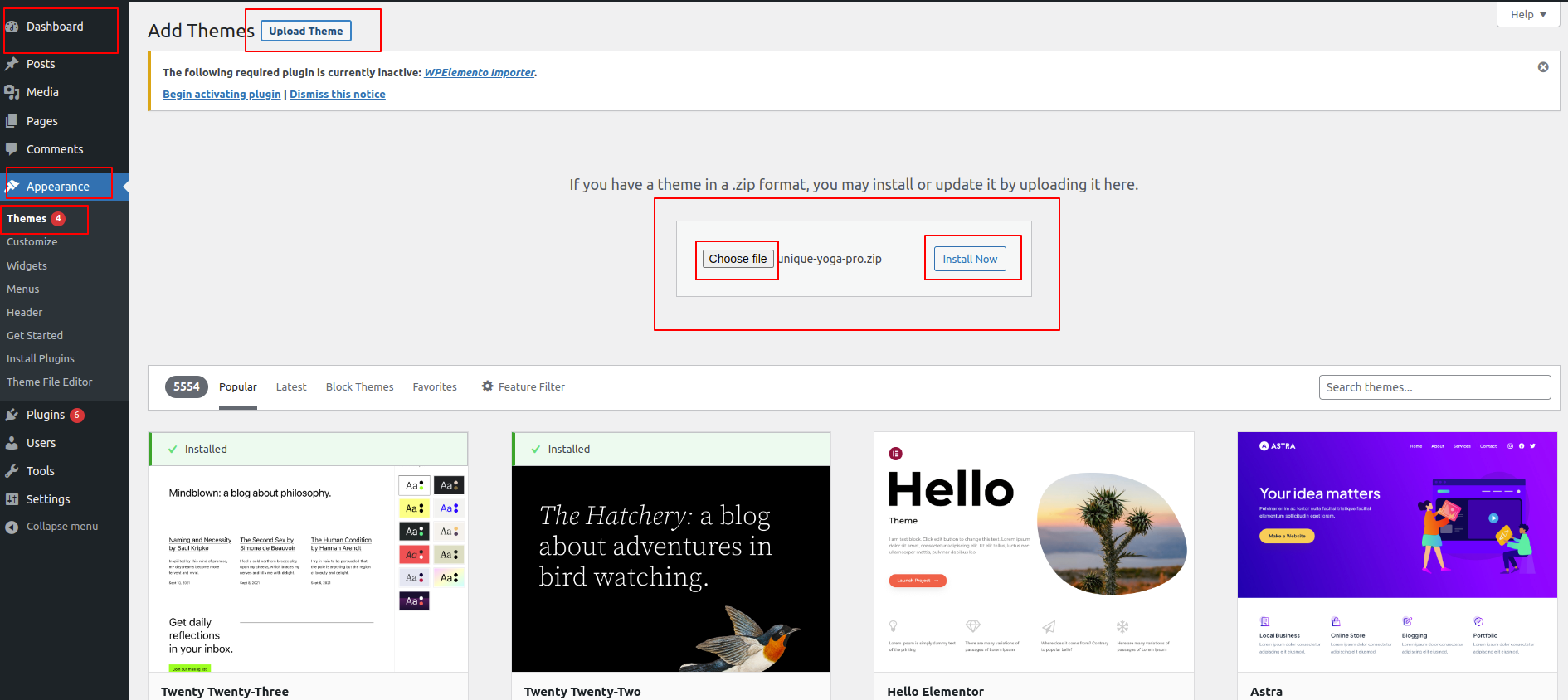 4. Click Install now after choosing your unique-yoga-pro zip file using the Browse button..