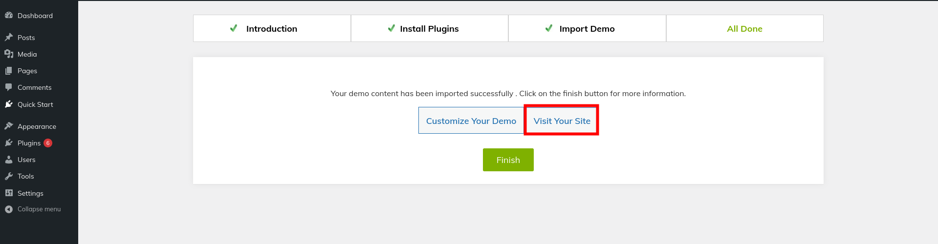 You will view all of the demo content on the top page as soon as you are finished..